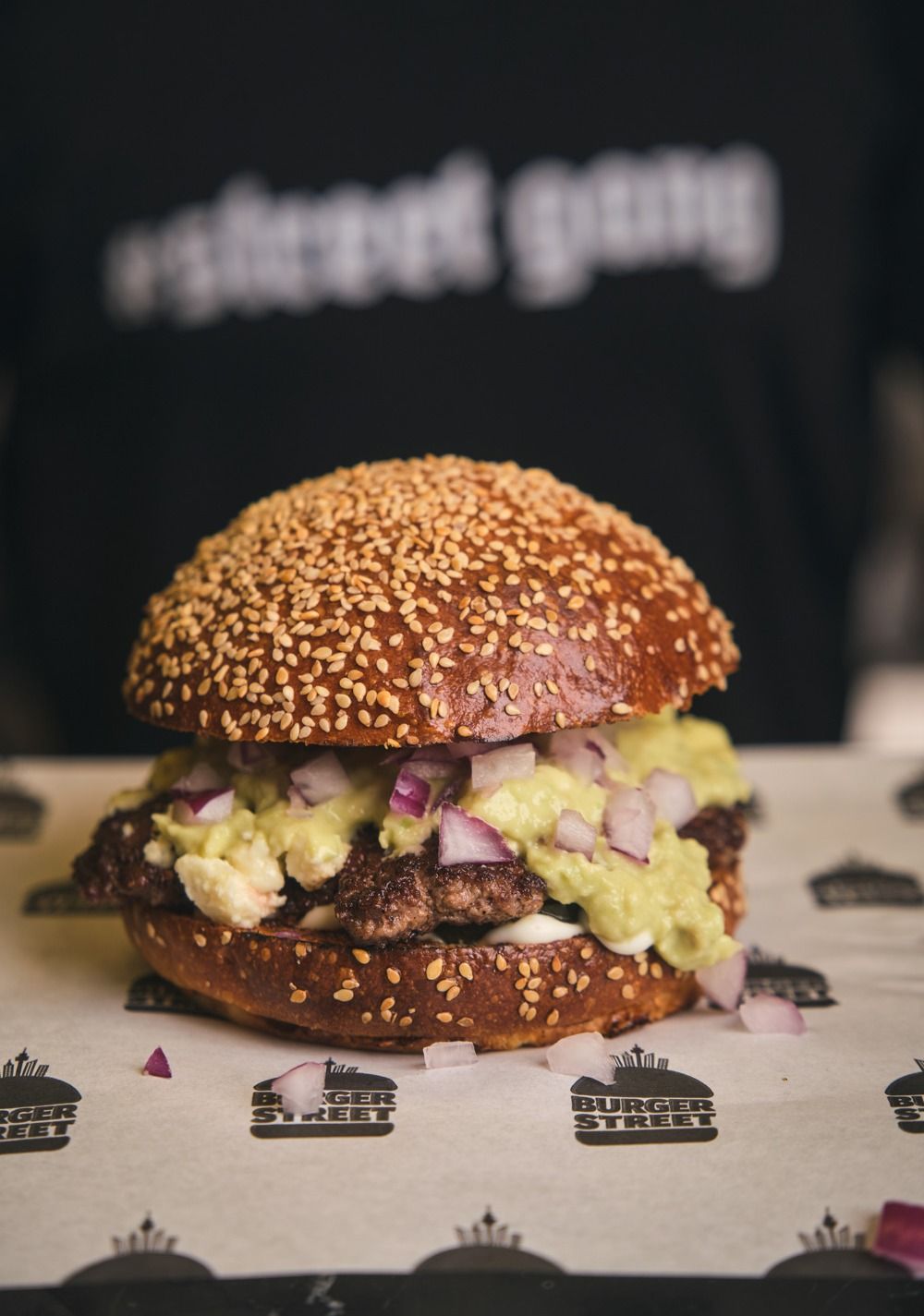 90 gr smash burger köftesi, burger peyniri, karamelize soğan, turşu, street sos (Burger+Patates 340₺) (Burger+Patates+İçecek 400₺)